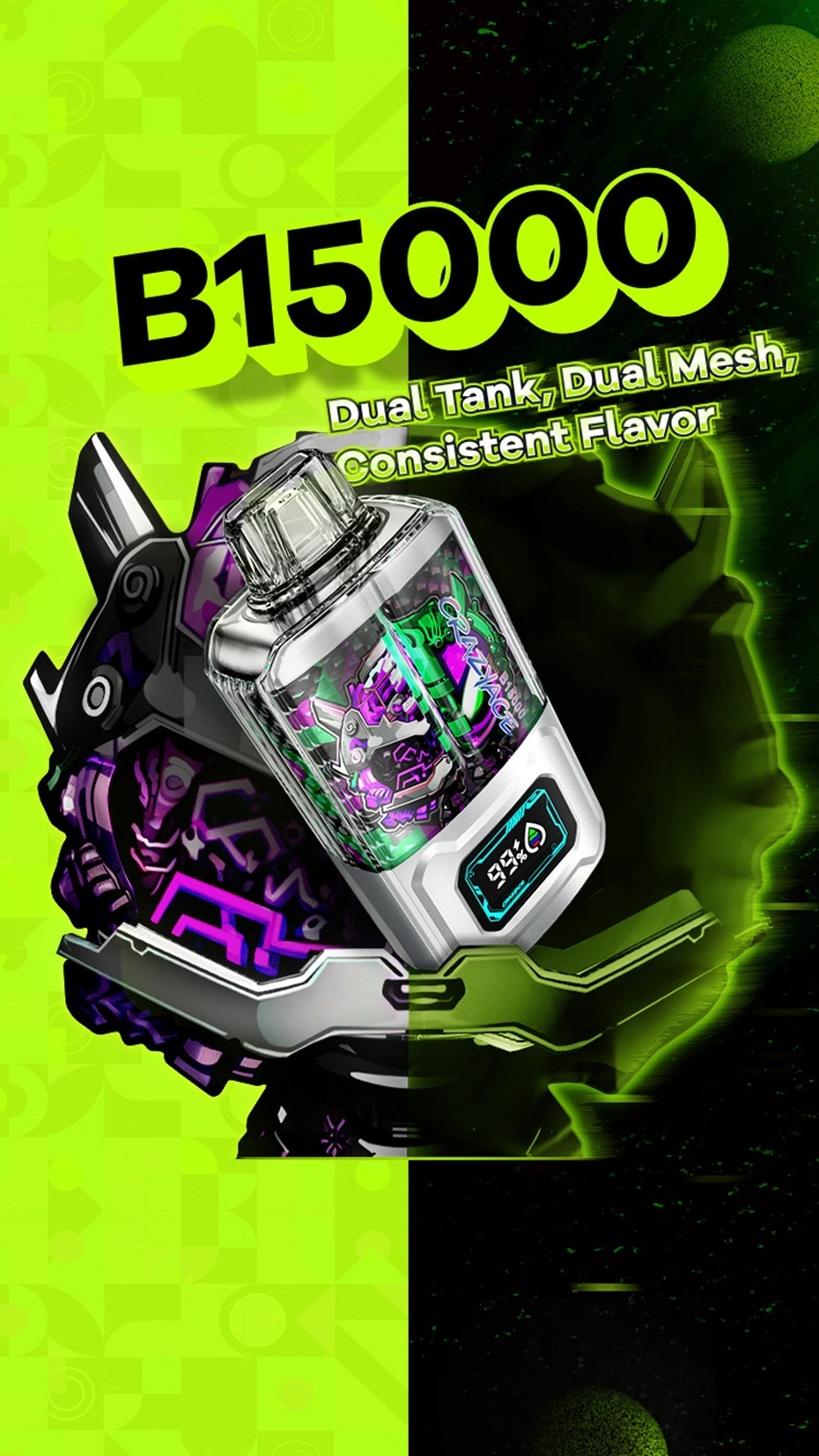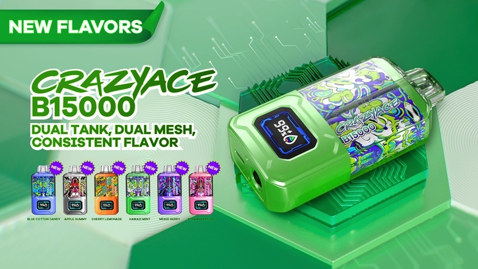 特色:雙芯擊發 20ml容量 900毫安電池ECO模式/RAGE MODE模式介紹Crazyace B15000一次性:無與倫比的電子煙體驗!使用 Crazyace B15000 Disposable 提升您的電子煙之旅,這是一款專為挑剔的愛好者設計的強大裝置。這款一次性電子煙具有尖端功能,每次泡芙都能帶來非凡的體驗。CRAZYACE B15000 一次性主要功能:15000口:為長時間的電子煙冒險做好準備。這款一次性裝置擁有令人印象深刻的15000每一口,確保您有充足的時間來品嚐這些味道。5%尼古丁鹽:以5%的尼古丁鹽含量體驗光滑、令人滿意的打擊。享受力量和光滑的完美平衡,旨在滿足您的渴望。20毫升總電子液體容量:無需頻繁補充。憑藉20毫升的電子液體容量,這款裝置讓您沉浸在豐富、美味的雲彩中。900mAh內建電池:電力持久!Crazyace B15000擁有堅固的900mAh電池,確保您可以享受不間斷的電子煙會話,而不必擔心充電。電子液體和電池智慧顯示屏:使用智慧顯示屏保持控制。跟蹤您的電子液體水準和電池壽命,為您提供最佳化電子煙體驗的寶貴資訊。使用Crazyace B15000一次性車體驗電子煙的未來。提升你的感官,品味每一次呼吸,並陶醉於專為那些需求最好的人設計的裝置