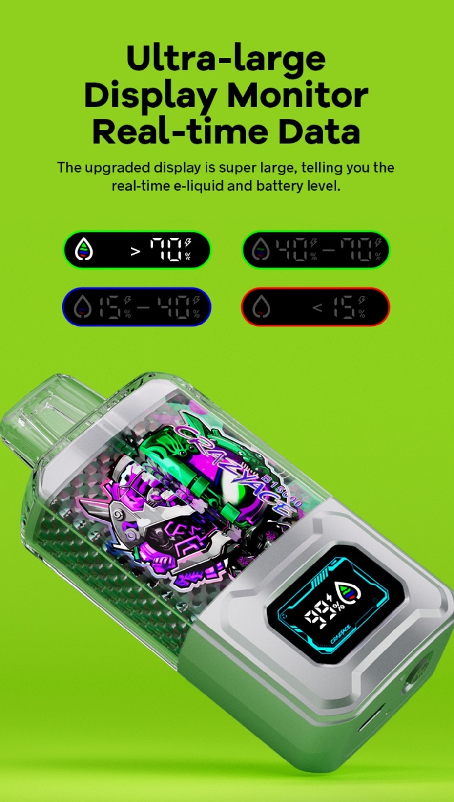 CRAZYACE 瘋狂王 15000口 可充電 可顯示電量和油量