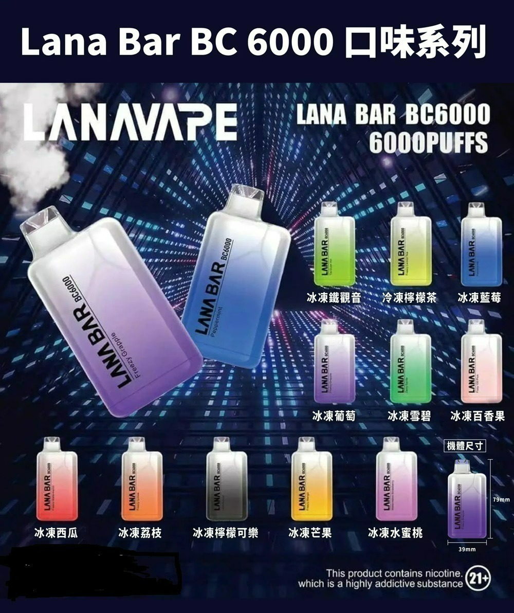 - 風味多樣:lana6000口擁有20種口味,拼接式設計,讓您帶著喜悅去感受vape風味