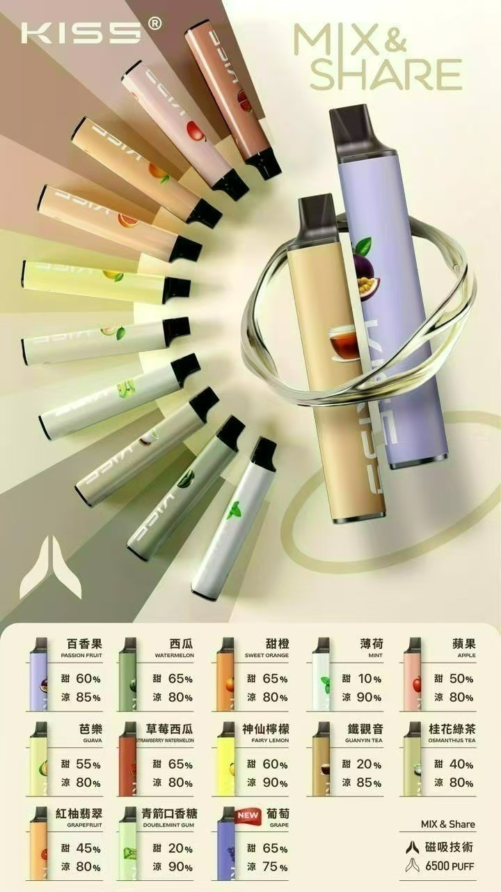 選擇KISS一次性霧化器,享受12種精選口味的自由組合,體驗78種一次性電子菸風味的無限可能。